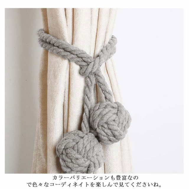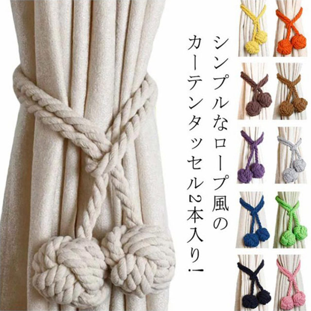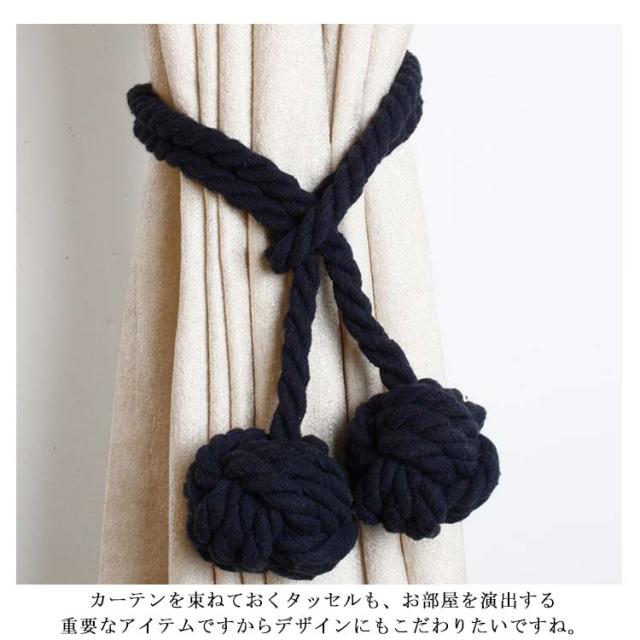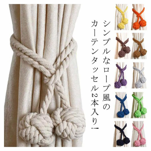 | シンプルなロープ風のカーテンタッセル2本入り! カーテンのデザインやインテリアに合わせてコーディネート♪ タッセルを変えるだけでお部屋がゴージャスに! カーテンを束ねておくタッセルも、お部屋を演出する重要なアイテムですからデザインにもこだわりたいですね。 シンプルで高級感のあるデザインのカーテンタッセルです。 いつもの窓辺を華やかにしてくれるアイテムです。 カーテンのデザインやインテリアに合わせてコーディネート♪ タッセルを変えるだけでお部屋がゴージャスに! カーテンを束ねるのに同じ生地のタッセルでは物足りない方にオススメ! カラーバリエーションも豊富なので色々なコーディネイトを楽しんで見てくださいね。 | |