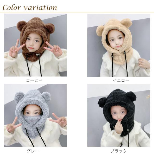 帽子 キッズ ネックウォーマー スヌード 耳付き 子供 フリース スヌード フードウォーマー くま耳
