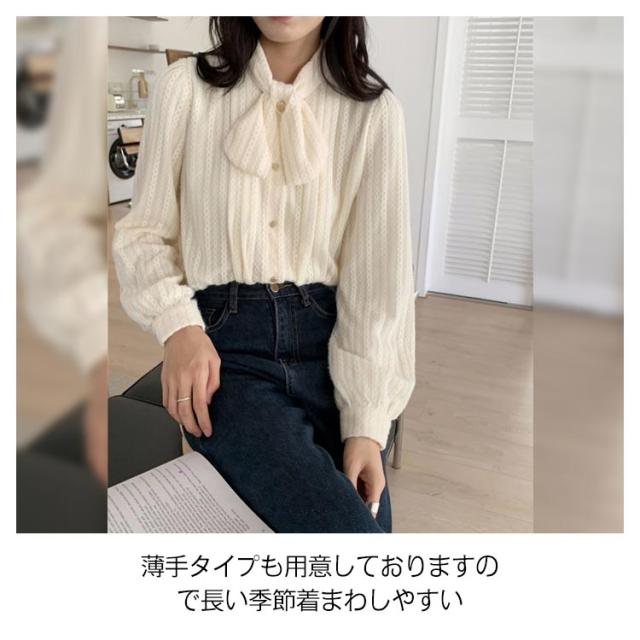裏起毛 ブラウス 長袖 シャツブラウス ボウタイ リボンタイ レディース シャツ トップス リボンシャツ レース ストライプ あったか 裏ボア 送料無料 カジュアル オフィス スーツ インナー 女性 ビジネス 通勤 事務服 春秋冬 大人 可愛い おしゃれ