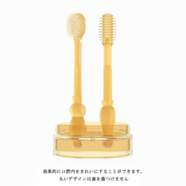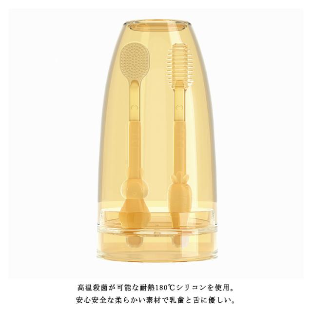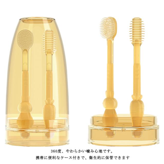 ベビー歯ブラシ 2点セット 赤ちゃん 歯磨き 乳歯ブラシ 舌ブラシ シリコン 新生児 幼児 ケース付き 耐高温 トレーニング はみがき ハミガキ 歯固め かわいい 出産祝い ギフト プレゼント 送料無料