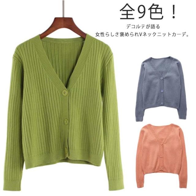 全9色!レディースカーディガン リブニット ニットカーディガン リブ編み Vネック 無地カーディガン ショート丈 羽織り ライトアウター 長袖 春服 秋服 シンプル おしゃれ 寒さ対策 コンパクト リブ ボタン 送料無料