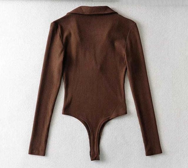 ボディースーツ レディース オールインワン ポロシャツ カットソー 長袖 レオタード リブニット Tシャツ ボディブリファー つなぎ ツナギ インナー 肌着 タイト スリム 肌着 細身 ストレッチ 無地 シンプル セクシー おしゃれ 秋 冬 春 送料無料