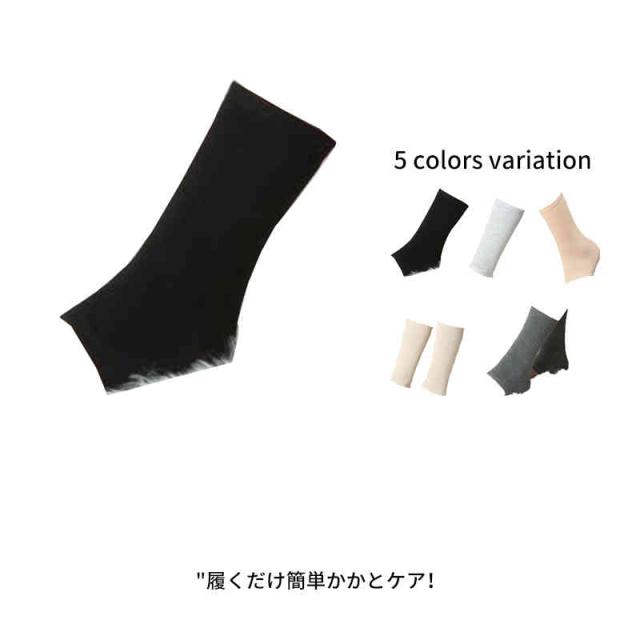 | 履くだけ簡単かかとケア! 薄手なので靴下との重ね履きもOK。 おやすみ時やおうちのリラックスタイムに履いて気になるかかとをしっとりケア。 オープントウタイプで、ムレやすいつま先も解放! 窮屈感なく、寝るときに履いていても快適です。 | |