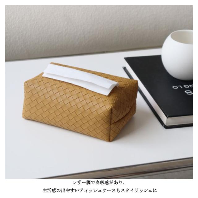 【送料無料】編み模様 ティッシュケース PUレザー 北欧 ティッシュボックスケース おしゃれ かわいい 車 収納 コンパクト フェイクレザー ティッシュカバー ティッシュ ケース インテリア