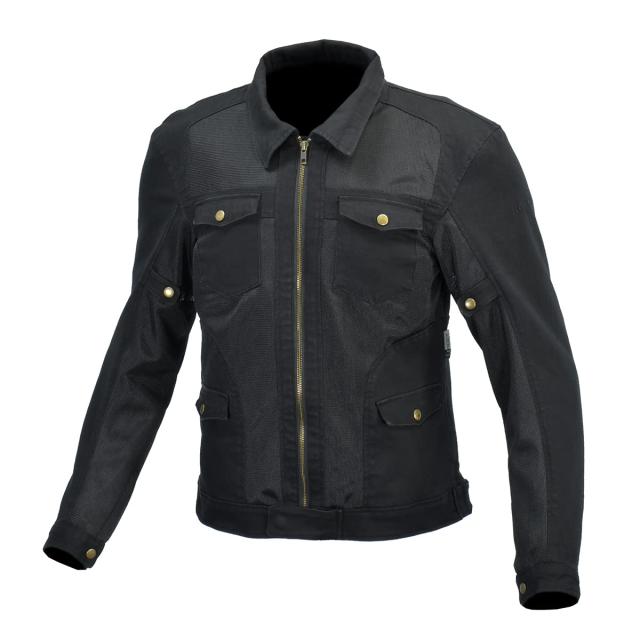 ビンテージ感のあるプロテクトハーフメッシュジャケット。胸部・肩・肘・背中のプロテクターを標準装備し、乗車姿勢が取りやすい立体パターンを採用。