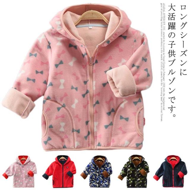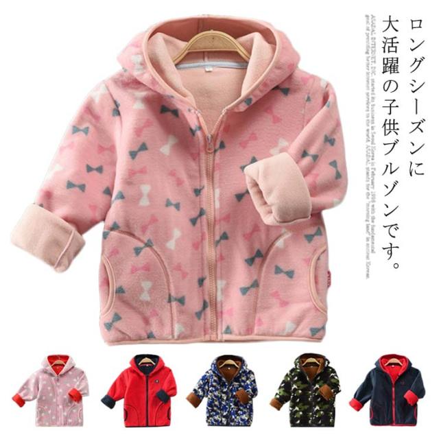 フリースブルゾン ボアブルゾン フリースコート ボアコート フリースジャケット ボアジャケット アウター 春秋 秋冬 長袖 柄 女の子 男の子 キッズ服 子供服 キッズアウター フード付き 羽織 あったか 防寒 ふわふわ