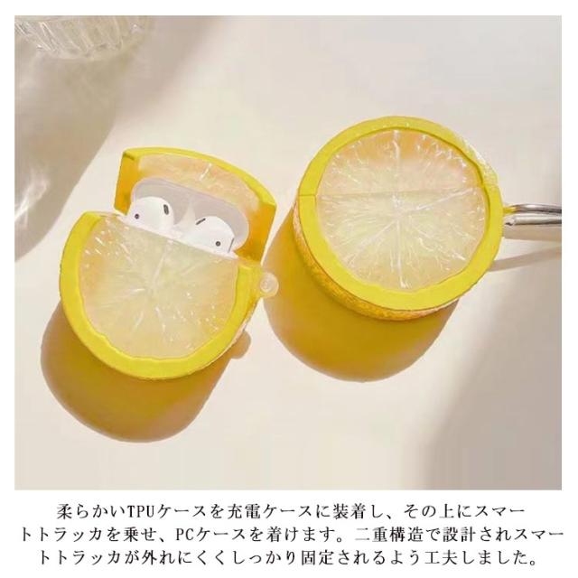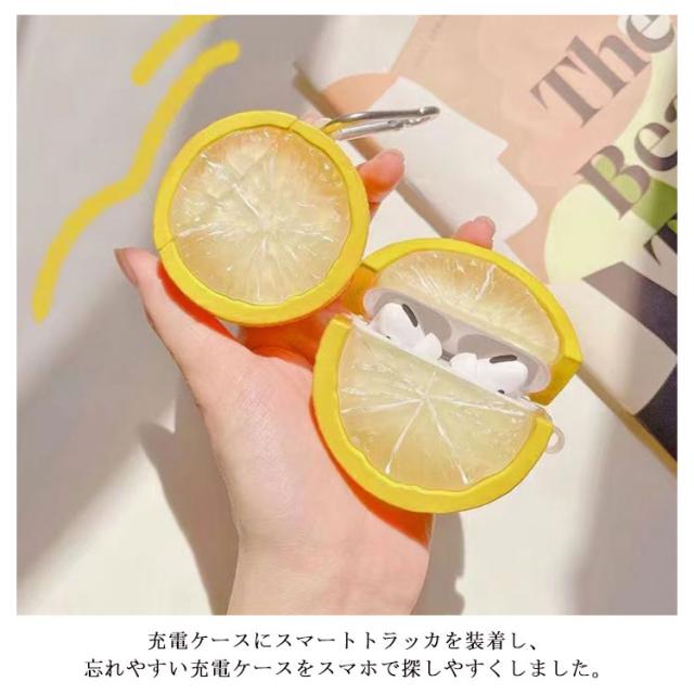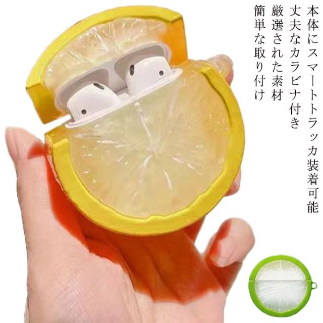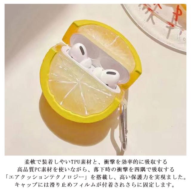 AirPodsPro ケース AirPods1/2 airpodspro airpods3 airpodspro ケース オシャレ シンプル 面白い レモン オレンジ TPU 落下防止 耐衝撃 クリア カラビナ 付 リング 付き