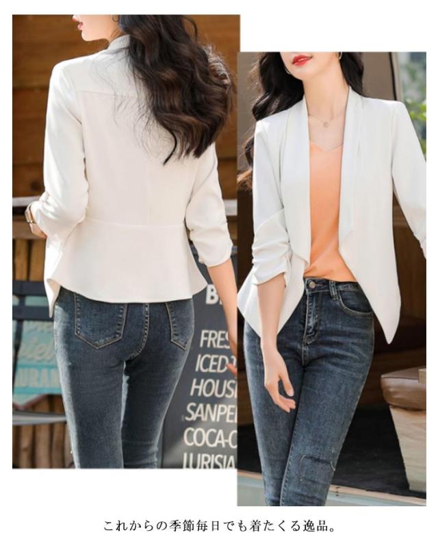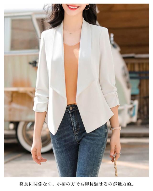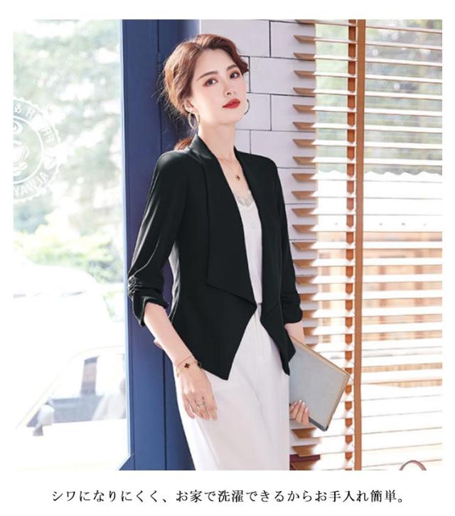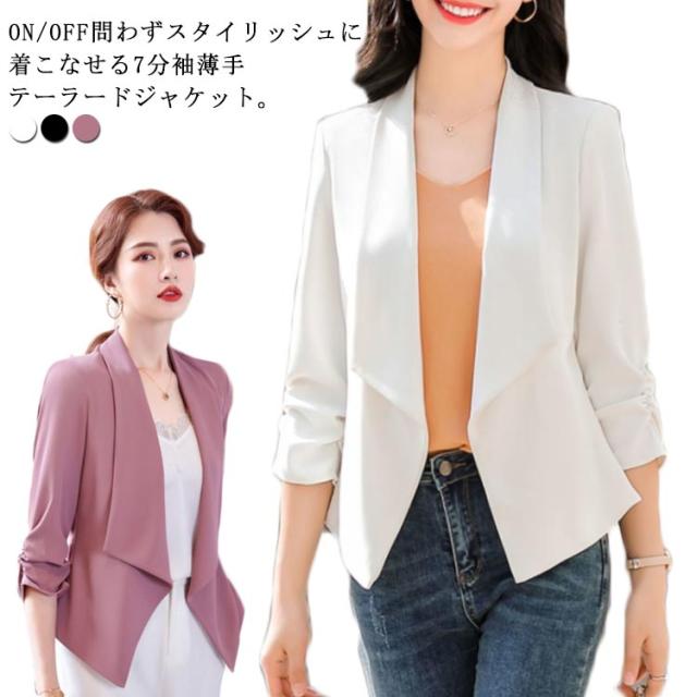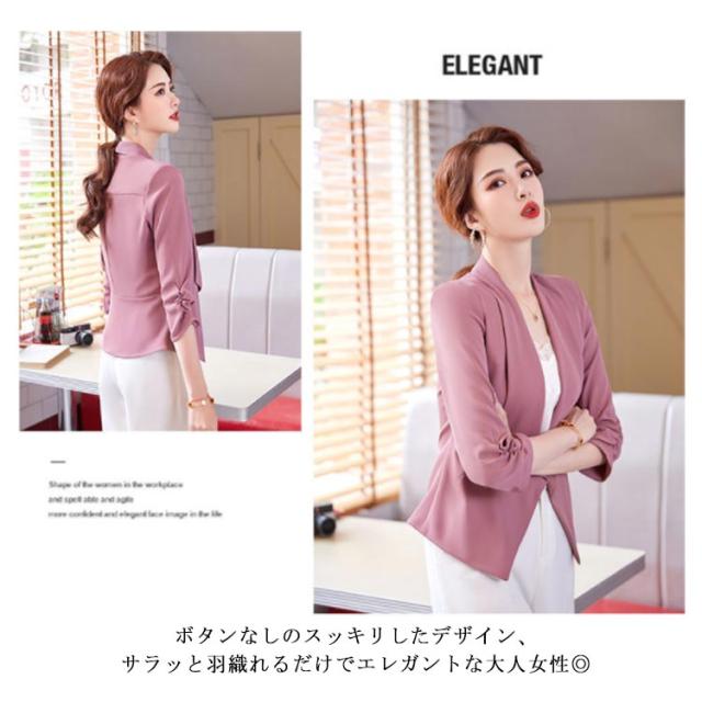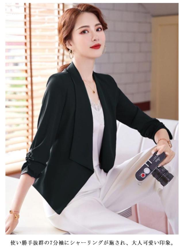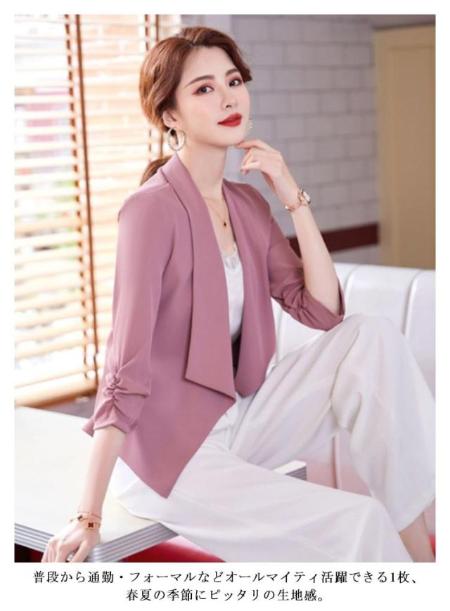 送料無料 7分丈 ジャケット ボレロ 羽織り テーラードジャケット 薄手 春夏 レディース ボタンなし ビジネス フォーマル 二次会 入園式 30代40代