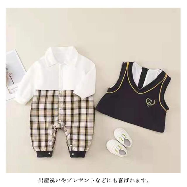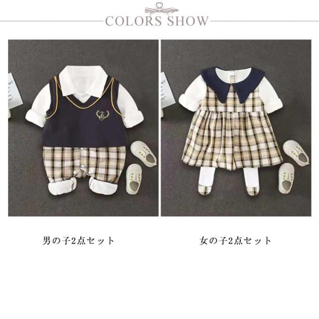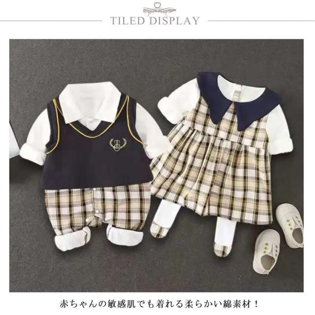 送料無料 ベビー服 ロンパース ワンピース 男の子 女の子 セットアップ 双子 お揃い チェック柄 春 秋 おしゃれ かっこいい かわいい 韓国子供服 韓国 子ども服 出産お祝い