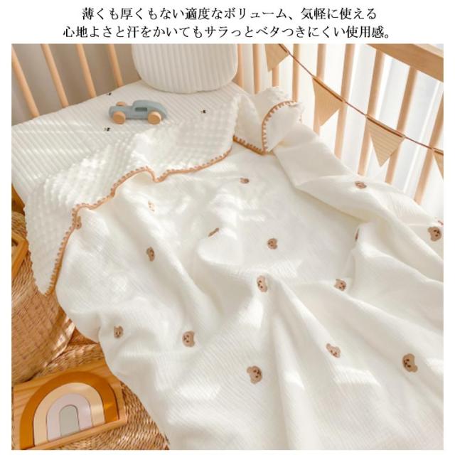 | お子様のお昼寝にピッタリのブランケット 天然のコットン素材を使用する。通気性があり、吸水性に優れています。適度に保温しながら体温や汗を放湿してくれるので、ベビーにぴったりの素材です。 薄くも厚くもない適度なボリューム、気軽に使える心地よさと汗をかいてもサラっとベタつきにくい使用感。 ご家庭の洗濯機で丸洗いできていつも清潔さをキープできるので、普段使いにピッタリです。 可愛い刺?、丈夫でキレイな縫製は長くご愛用いただけます。 お昼寝のブランケットやリラックスタイムのマット、おむつ替えシート、授乳ケープなど、多様にお使いいただけます。お外でも活躍します。 | |