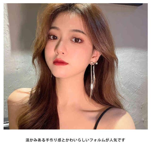 ピアス 揺れる りぼん タッセル シルバー キラキラ レディース シンプル かわいい おしゃれ トレンド S925 アクセサリー
