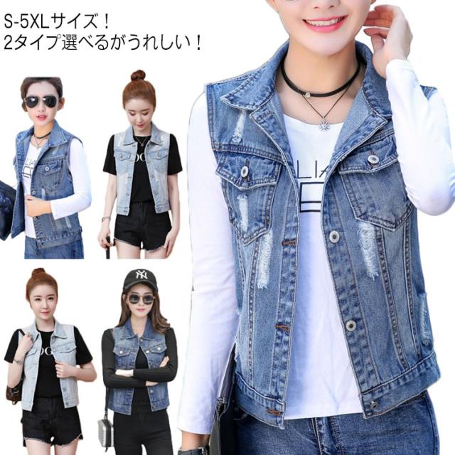 《送料無料》S-5XLサイズ!2タイプ選べる!デニムジャケット デニムベスト レディース アウター Gジャン デニム ジャケット ショート丈 コンパクト ダメージ加工 トレンド ノースリーブ トップス 春 夏 秋
