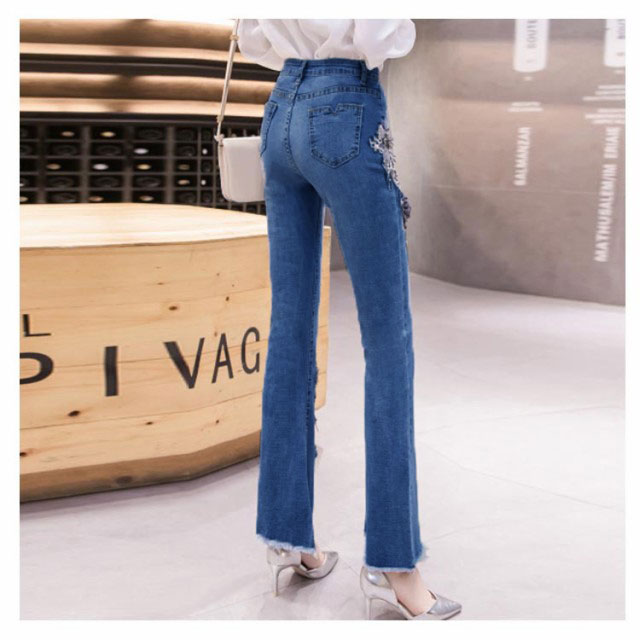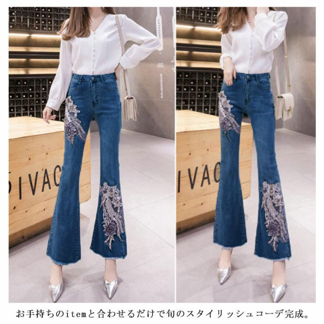 | キレイめの刺繍入りデニムパンツが登場。 フラワーモチーフ刺繍がアクセントを添えて。 脚を綺麗に魅せてくれるフィット感で、裾部分すこし広がったシルエットも魅力。 ハイウエストだから脚長にスタイルアップ出来るのも嬉しいポイント! ウエストINして着用してもOK!これ一枚でトレンドのスタイリングに大変身。 伸縮性の良いストレッチタイプなので、長時間の着用でも窮屈感がありません。 お手持ちのitemと合わせるだけで旬のスタイリッシュコーデ完成。 | |