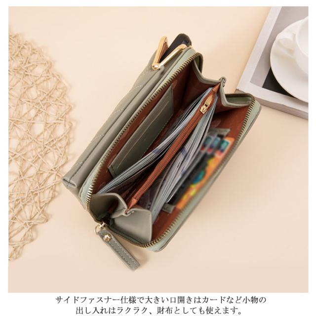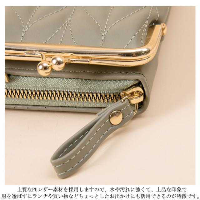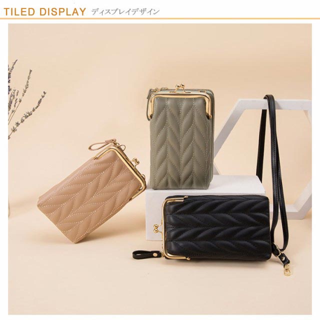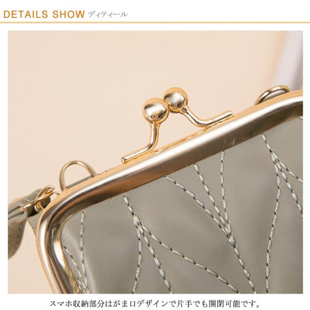| スマホの持ち運びに便利な小型のショルダーバック スマホ収納部分はがま口デザインで片手でも開閉可能です。 サイドファスナー仕様で大きい口開きはカードなど小物の出し入れはラクラク、財布としても使えます。 上質なPUレザー素材を採用しますので、水や汚れに強くて、上品な印象で服を選ばずにランチや買い物などちょっとしたお出かけにも活用できるのが特徴です。 全体にシンプルなデザインなので女性らしい上品な印象です。 | |