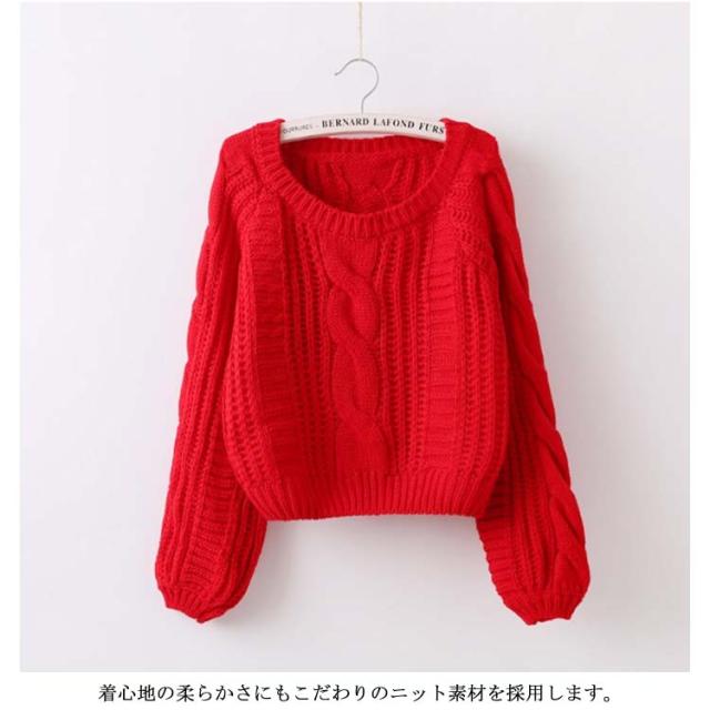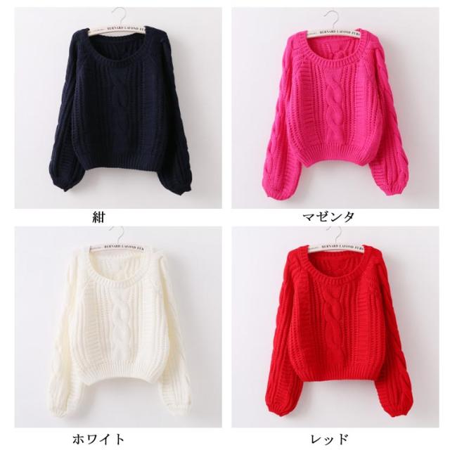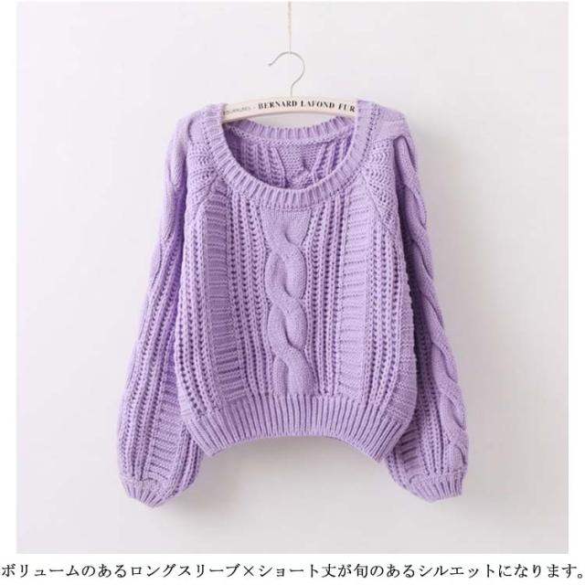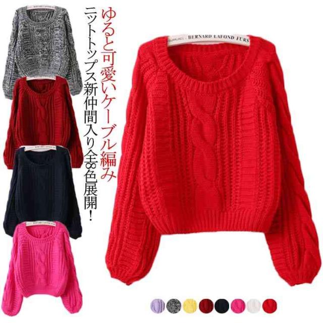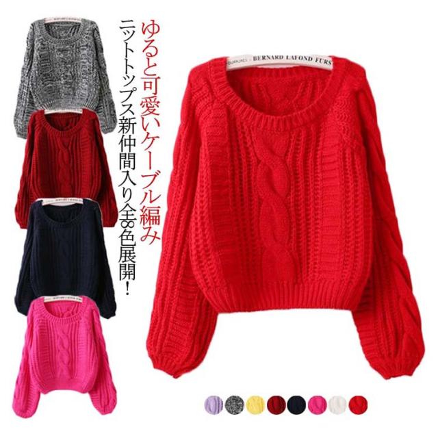 新仲間入り全8色!ニット レディース ケーブルニット ざっくりニット Uネック ニット セーター トップス プルオーバー パススリーブ ショート丈 可愛い ケーブル編み 秋 冬