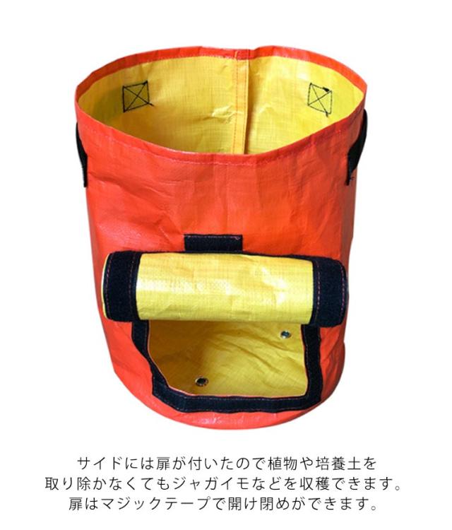 | 家庭菜園・園芸用植え袋 ポリエチレンで編んであるので通気性にすぐれています。 厚手で破れにくい素材だから繰り返し使用できます。 サイドには扉が付いたので植物や培養土を取り除かなくてもジャガイモなどを収穫できます。扉はマジックテープで開け閉めができます。 野菜つくりや花卉栽培、観葉植物栽培に最適です。 | |