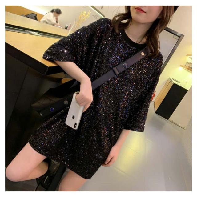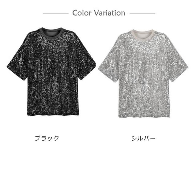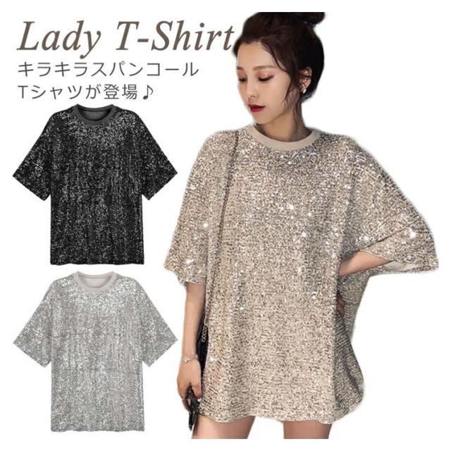 スパンコール Tシャツ 半袖Tシャツ クールネック キラキラ Tシャツ レディース スパンコール トップス ダンス衣装 ダンスウェア パーティー コスチューム スパンコール衣装 イベント衣装