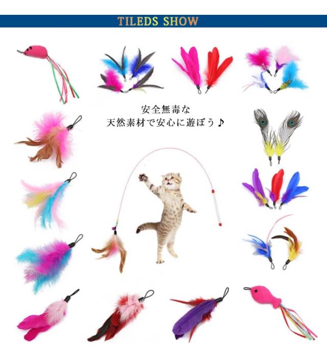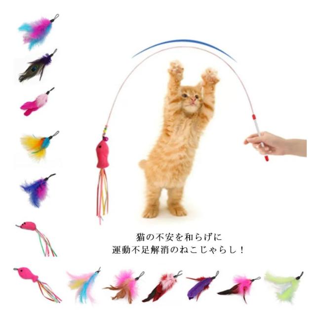 | 猫の不安を和らげに運動不足解消のねこじゃらし! ねこじゃらしの先端につけるおもちゃは10種類、竿本体と合計11点セット。 安全無毒な天然素材で安心に遊ぼう♪ 室内飼い猫の運動不足解消、ストレス解消に役立つ。 | |