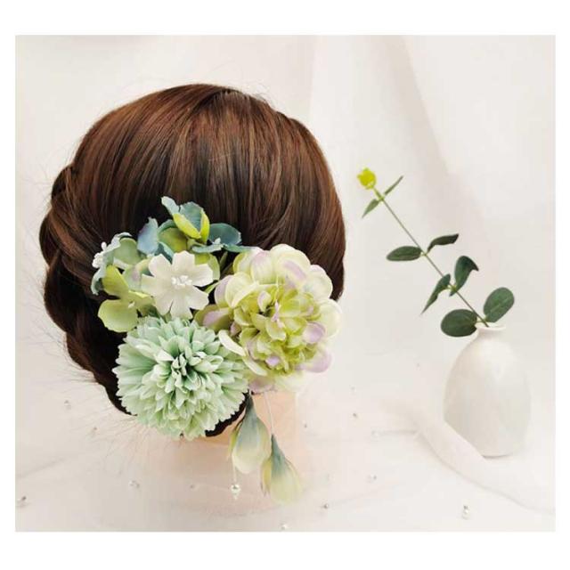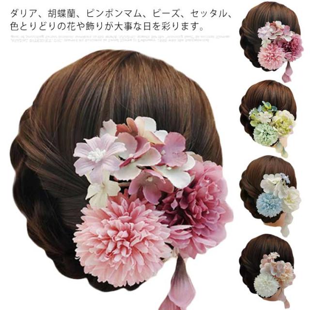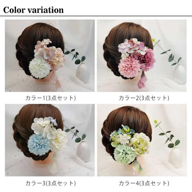 髪飾り ドライフラワー お花 浴衣 成人式 結婚式 和装 3点セット クリップ コーム Uピン 振袖用 袴 七五三 着物 卒業式 ショートヘア ウェディング クリップ ピンク 白 ブルー 緑