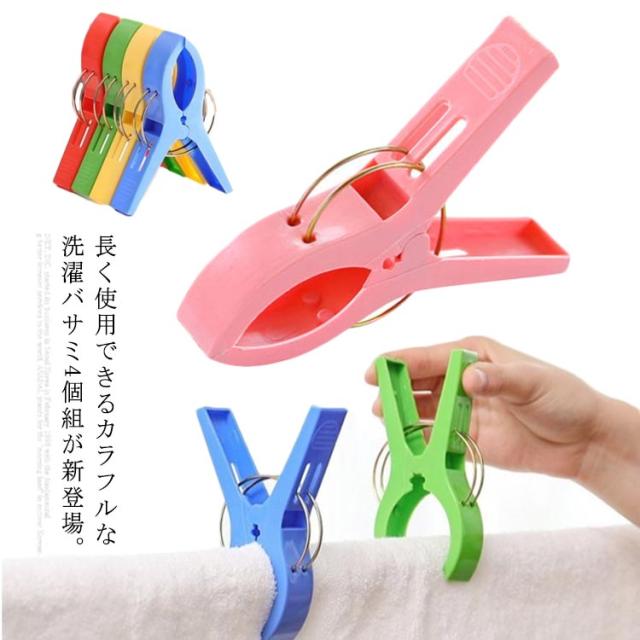 洗濯バサミ 布団はさみ 洗濯クリップ 防風 洗濯ピンチ 竿用ピンチ 洗濯用品 物干し 強力 靴下用 下着用 4個入り カラフル 室外用 室内用 多機能