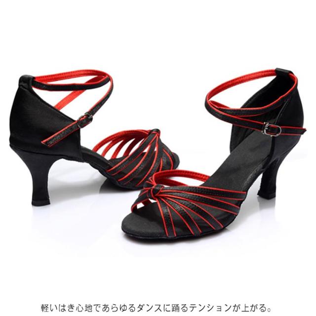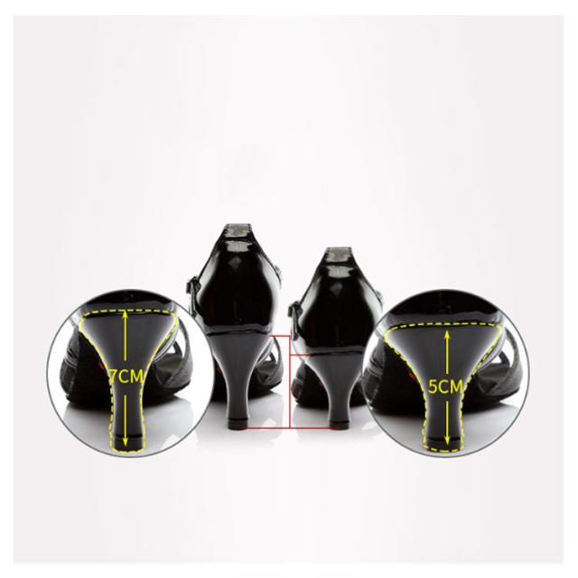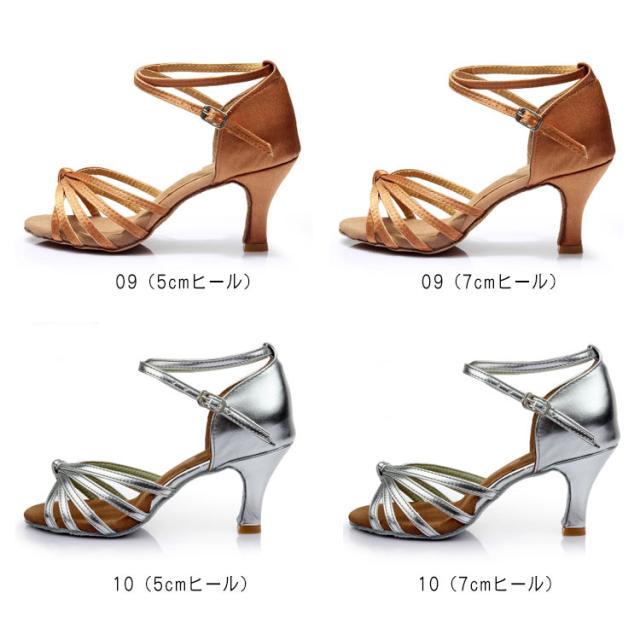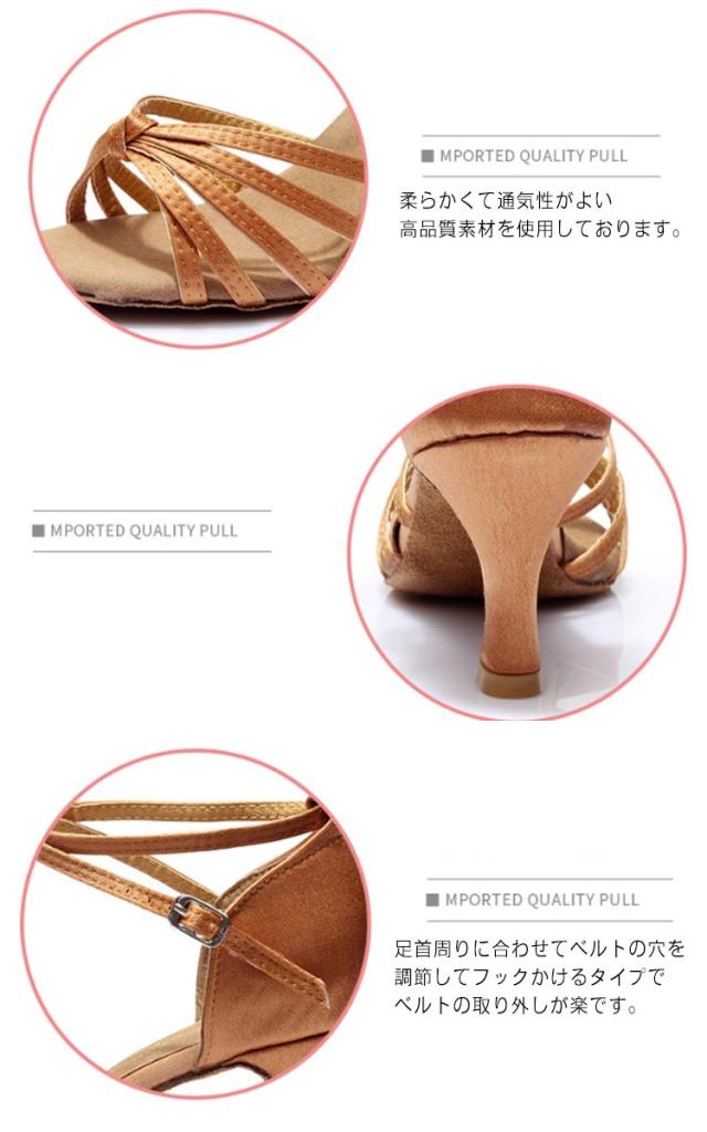 | 5cmヒールと7cmヒールが選べる!社交ダンスシューズ・ラテン用のダンスシューズです。 軽いはき心地であらゆるダンスに踊るテンションが上がる。 柔らかくて通気性がよい高品質素材を使用しております。 足首周りに合わせてベルトの穴を調節してフックかけるタイプでベルトの取り外しが楽です。 ストラップは美しさと安定感があります。 柔らかく履きやすい。 安定感のあるヒール付のダンスシューズステージ用に最適! | |