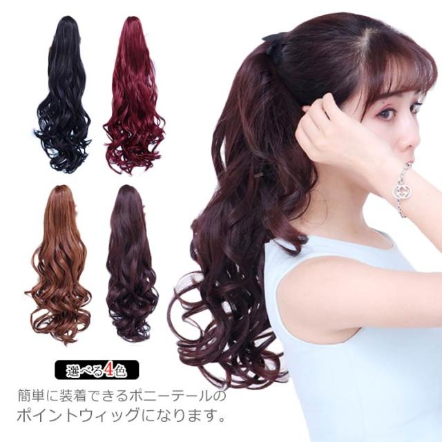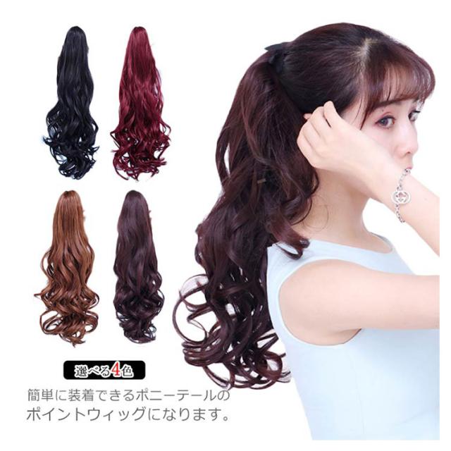 ポニーテール ウィッグ エクステ 部分ウィッグ ポイントウィッグ ロング ふわふわ 巻き髪 耐熱 薄毛 つけ毛 ヘアークリップ 4色選び お洒落