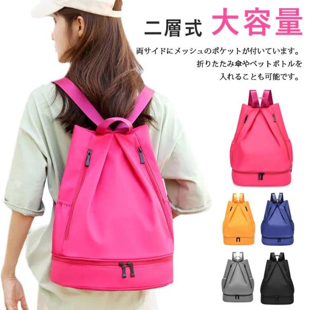送料無料 プールバッグ 女の子 男の子 大人 ナップサック 2層式 キッズ サイドポケット リュック型 子供 ビーチバッグ プールバック スイムバッグ プール 水泳 スイミング バッグ 小学生 中学生 高校生 ピンク 黒