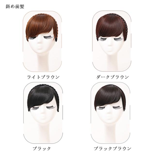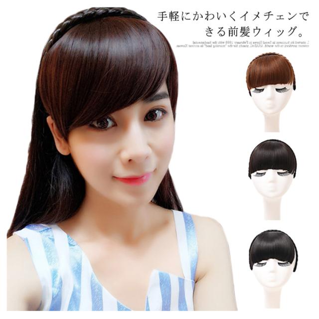 2タイプ カチューシャ付き 前髪 ぱっつん 斜め前髪 前髪ウィッグ エクステ 三つ編みカチューシャ ヘアバング 付け毛 部分ウィッグ 耐熱 成人式 自然