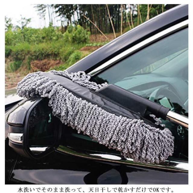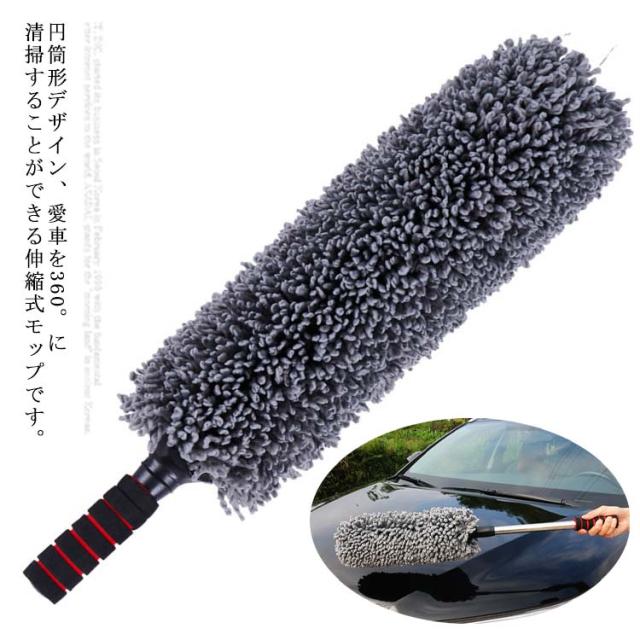 伸縮モップ 洗車用 車用ほこり取り 伸びる 47cm 洗える 送料無料 ハンディモップ 洗車ブラシ ハンドモップ 伸縮 洗車用品 傷防止 掃除道具 モップダスター 軽量 収納ケース付き