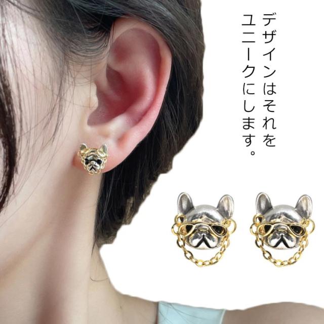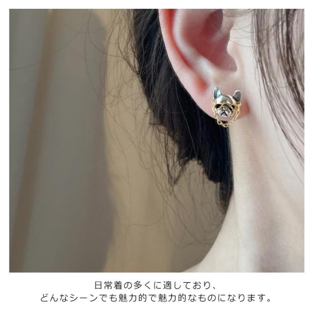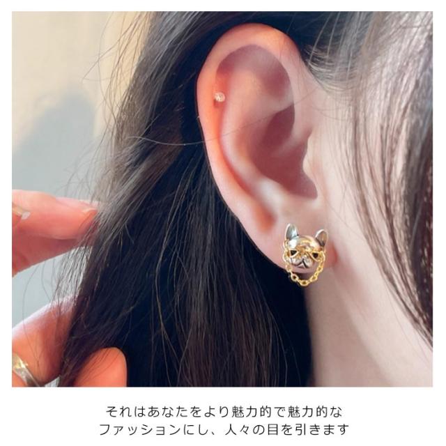 送料無料 軟骨ピアス ボディピアス かわいい キャッチ チャーム シルバー ゴールド 金属アレルギー対応 犬 いぬ イヌ 骨 動物 どうぶつ アニマル フレンチブルドッグ ボストンテリア ジュエル おしゃれ セカンドピアス メンズ レディース なんこつぴあす