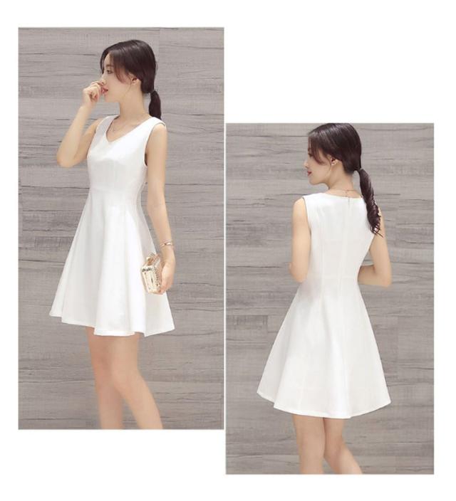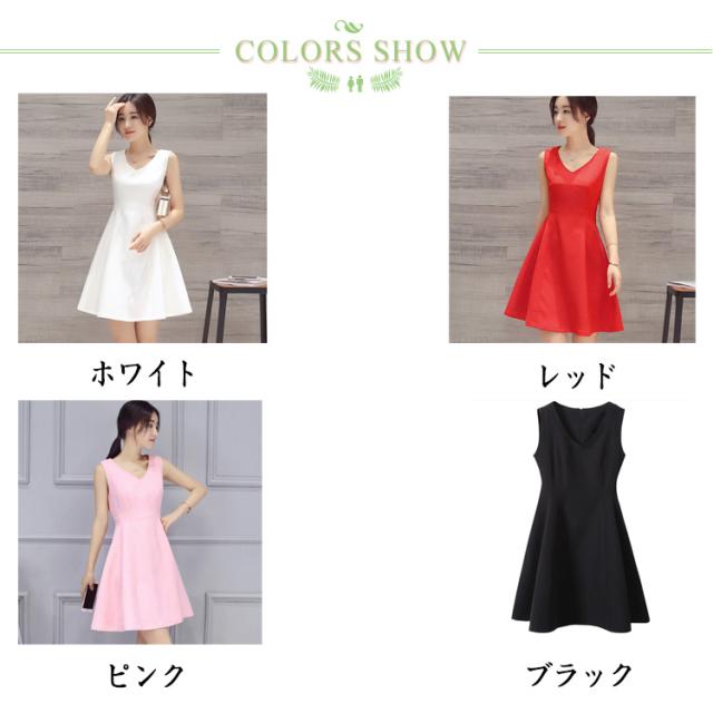 【送料無料】ミニワンピース ミニドレス 白 韓国 ノースリーブ Vネック キャバ フレアワンピース aラインワンピース タイト レディース 結婚式 発表会 キャバドレス 上品 無地 大人可愛い 黒 ホワイト ブラック