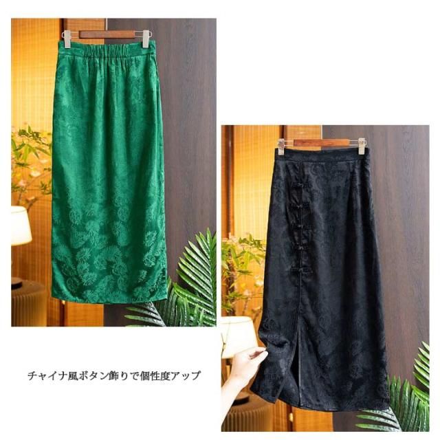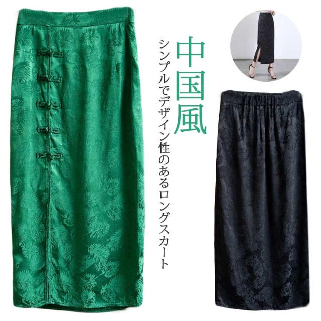 送料無料 スカート 女性 ファッション レディース ロング チャイナドレス カジュアル 大きいサイズ 春 夏 秋 Aラインスカート 無地 チャイナ風 中国風 40代 50代 60代 エレガント シンプル お洒落 キレイめ 普段着 ボトムス