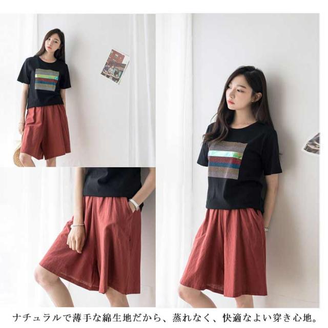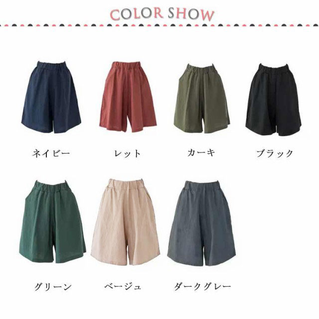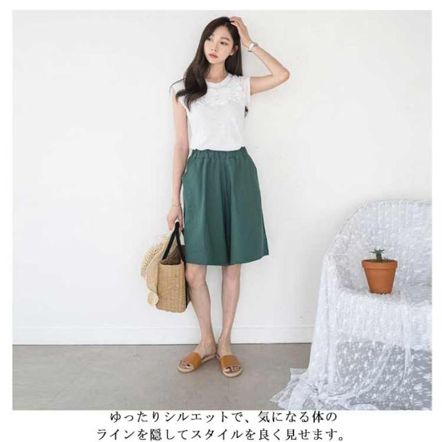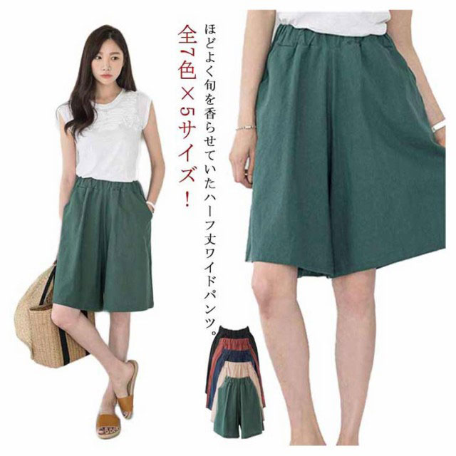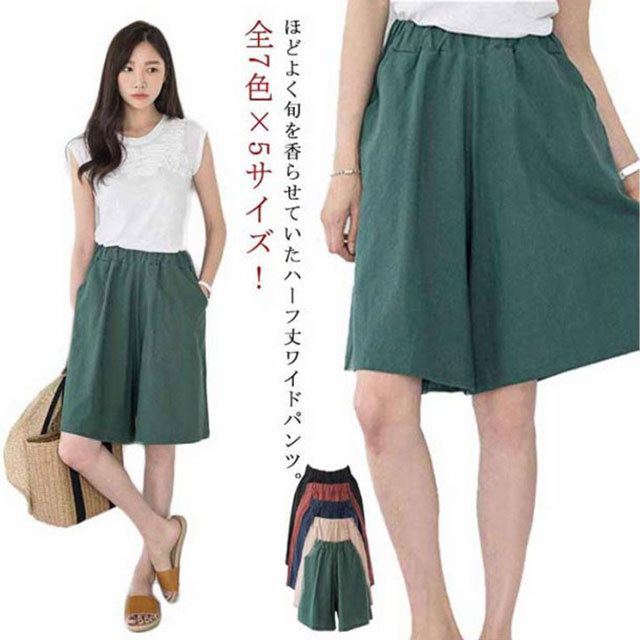 全7色×5サイズ 送料無料 ワイドハーフパンツ 膝丈 ワイドパンツ レディース ハーフパンツ 5分丈 カジュアル ショートパンツ ビッグシルエット ボトムス シンプル 無地 体型カバー