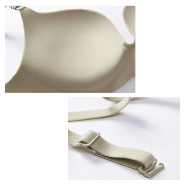| しっかりと形成された立体的なモールドカップが、バストの形をぷっくり丸くキレイに魅せる! シームレス仕様&波型加工で薄着にも響きにくいから洋服のラインもキレイ! 着けていることを忘れちゃうほどのやさしいつけ心地。 ワイヤーで身体に跡が残る心配なし。シームレスで着る服に悩まない。 薄く、伸縮性のある肌触りの良いストラップが、肩への負担を減らします。 自立した大人の上品さを演出します | |