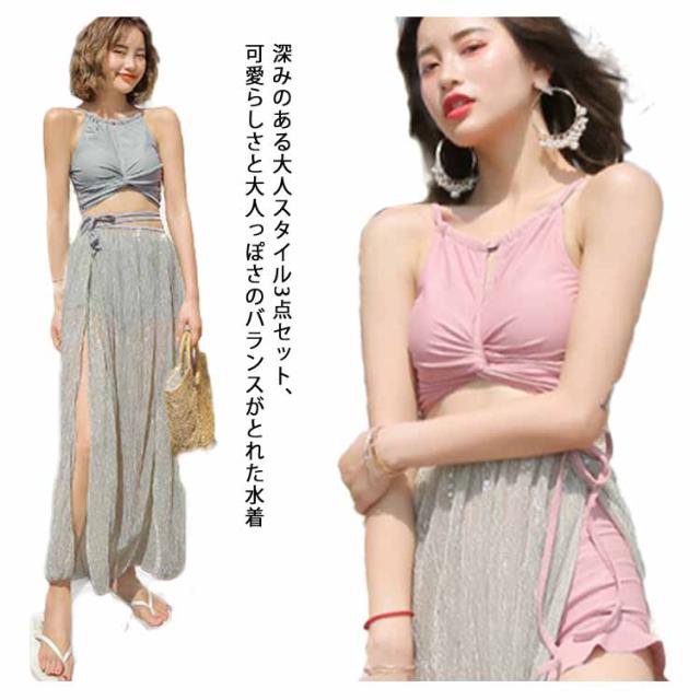 水着 レディース 女子 体型カバー ワンピース水着 スカート ハイウエスト バンドゥ ビキニ タンキニ ロングスカート セパレート パレオ 3点セット 無地 オトナ女子 リゾート プール 海