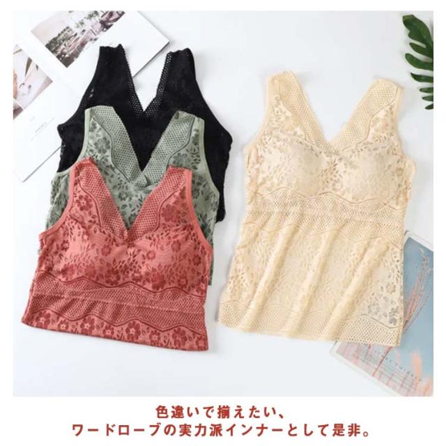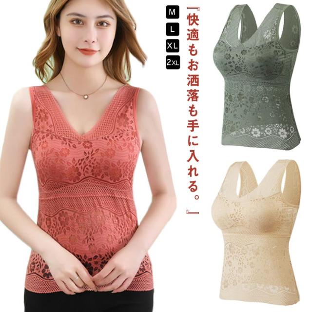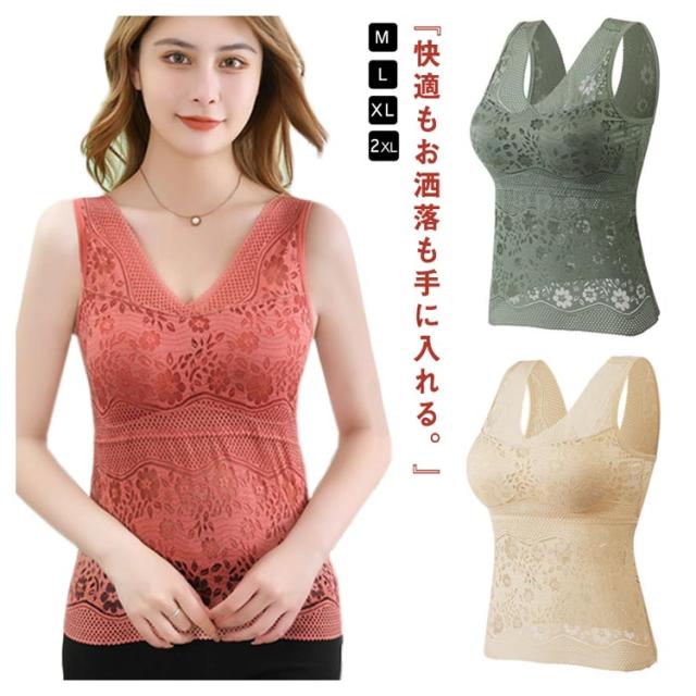ノンワイヤー ブラ ブラジャー タンクトップ ブラスリップ カップ付き レース 吸汗速乾 ストレンチ レディース インナー スリム Vネック おうちブラ ルームウェア 大きいサイズ おしゃれ 母 ママ【送料無料】