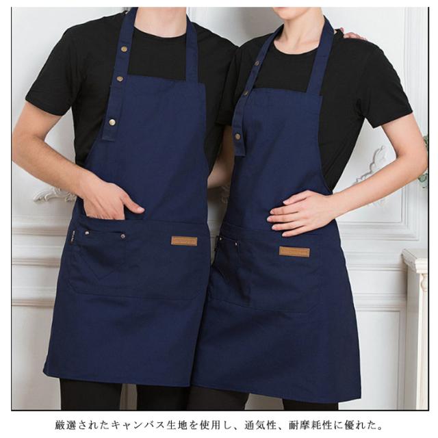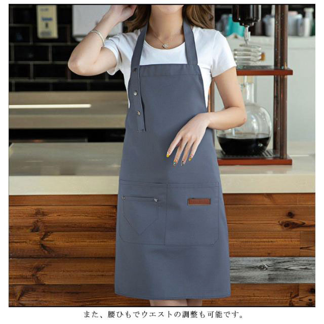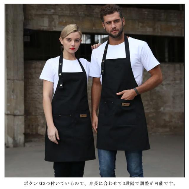 | シンプルで定番の男女兼用首掛け式エプロンです。 厳選されたキャンバス生地を使用し、通気性、耐摩耗性に優れた。 厚めで丈夫な生地と丁寧な裁縫により、洗濯してもシワになりにくい。 ボタンは3つ付いているので、身長に合わせて3段階で調整が可能です。 また、腰ひもでウエストの調整も可能です。 2つのポケットも付き、スマホやメモ帳などをサッと出し入れできます! | |