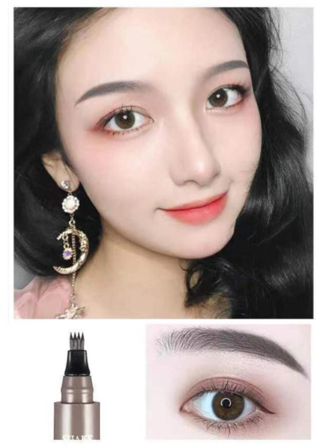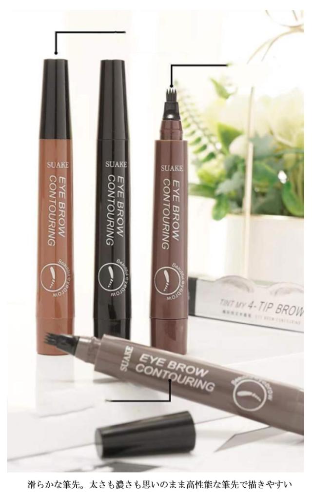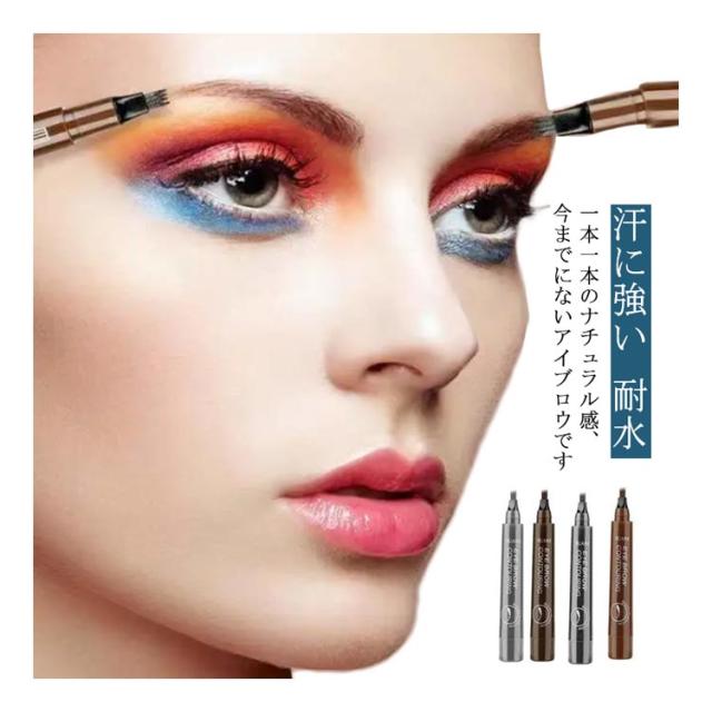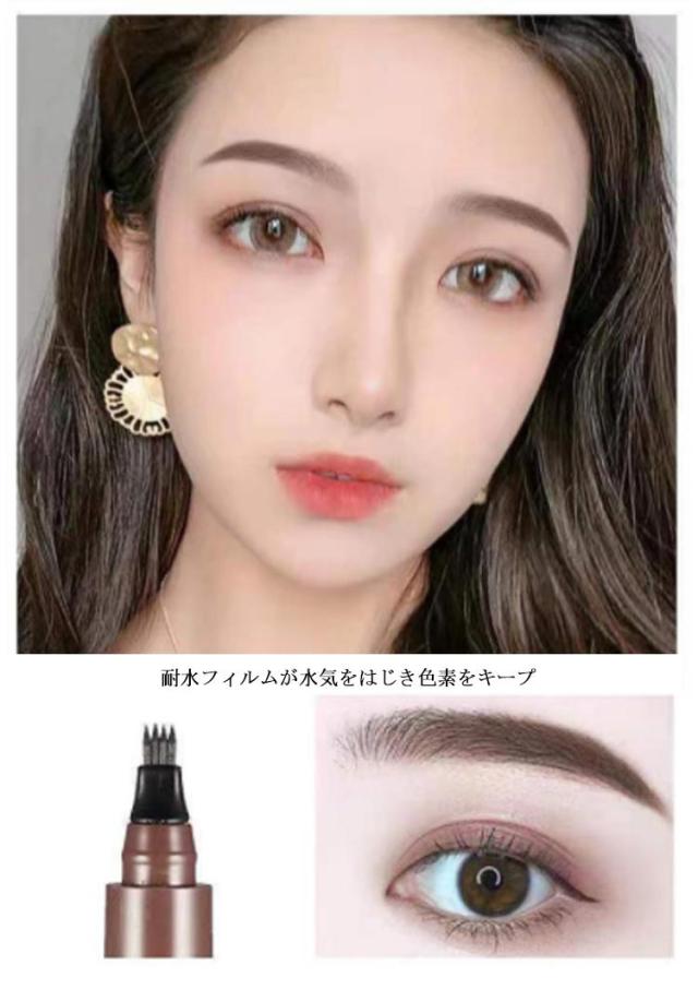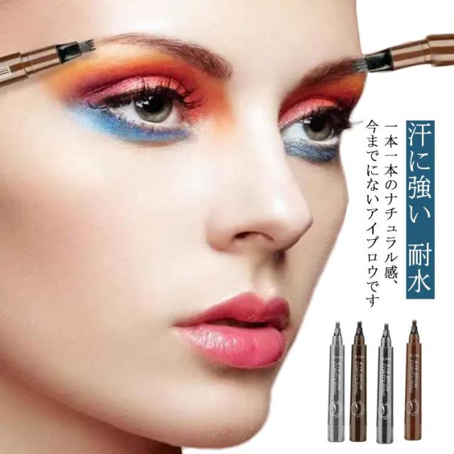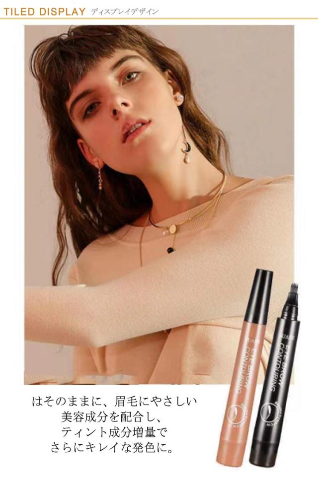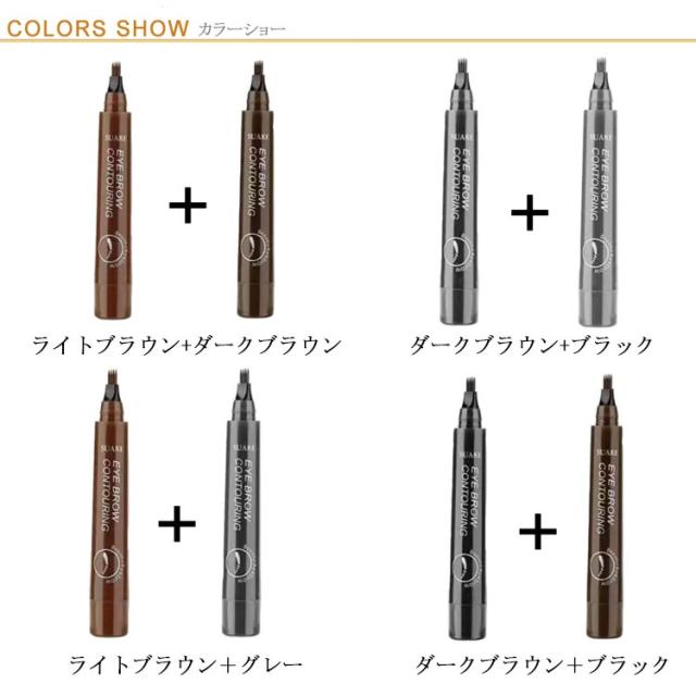 送料無料 2点セット アイブロウティント 眉ティント 落ちない眉 ウォータープルーフ 汗に強い ナチュラル 眉毛 まゆ毛 アイメイク フォーク リキッド 筆ペンタイプ 消えない 耐水 グレー ライトブラウン ダークブラウン ブラック