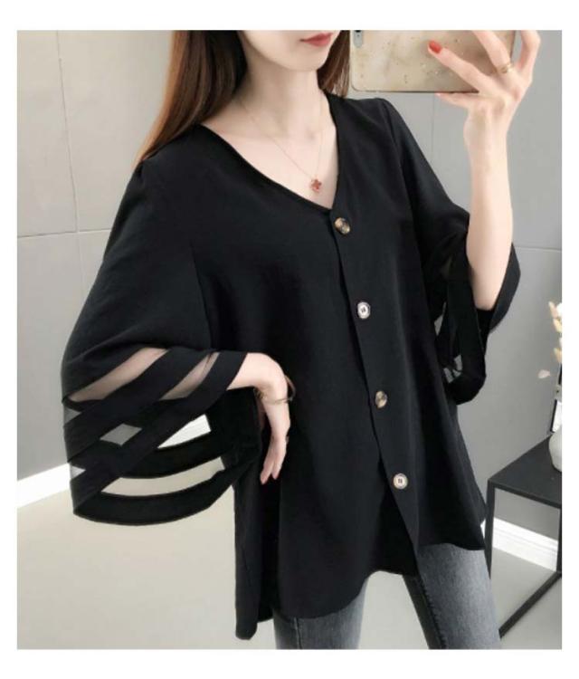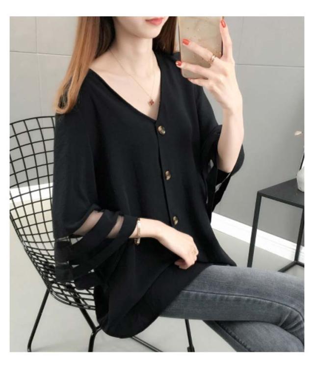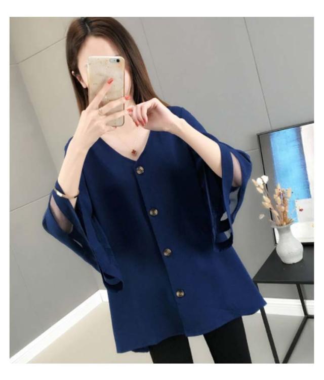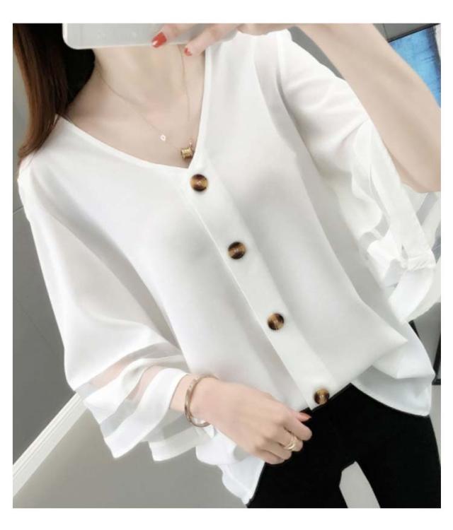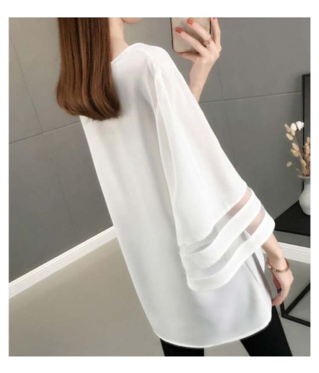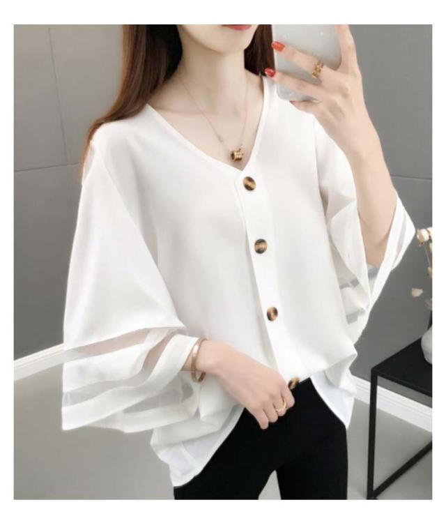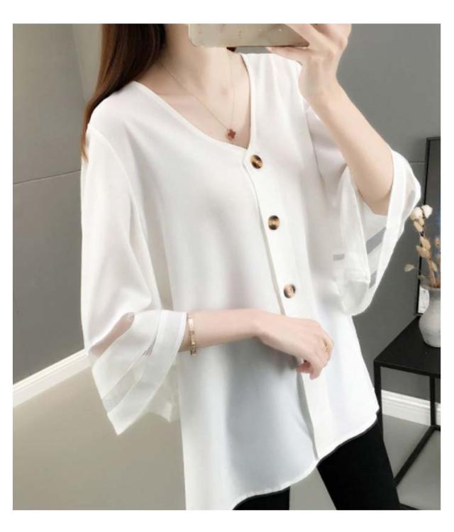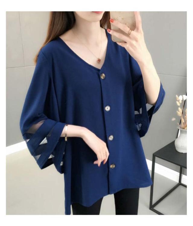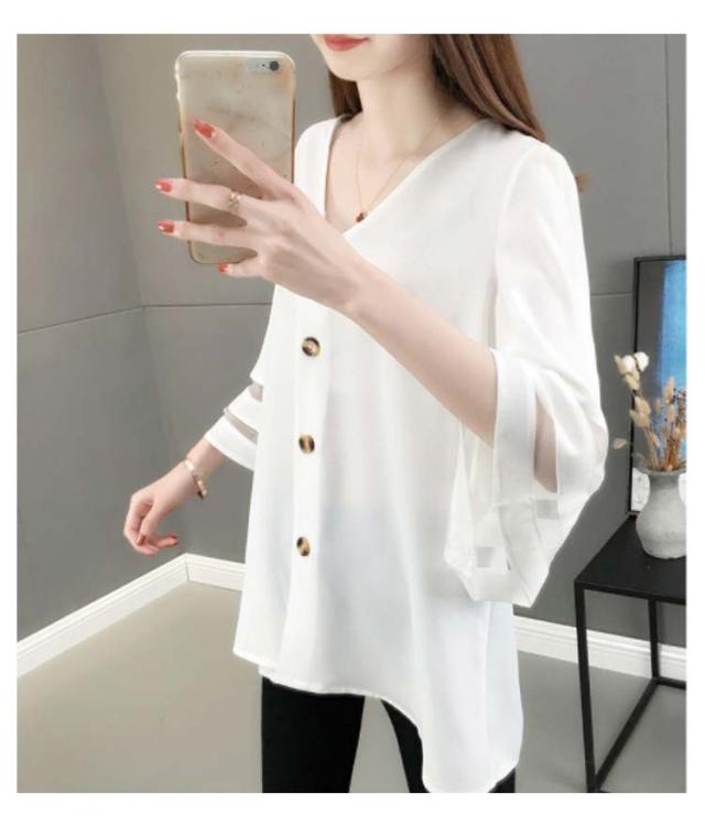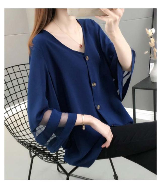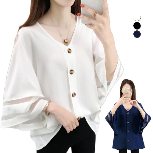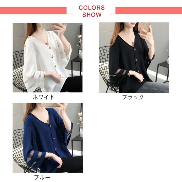 レディース シフォンブラウス vネック ブラウス 大きサイズ 春秋 オシャレ ゆったり ブラウス 七分袖 ブラウス フォーマルブラウス シフォン フレア袖 無地 送料無料 シンプル カジュアル オシャレ ナチュラル 着痩せ