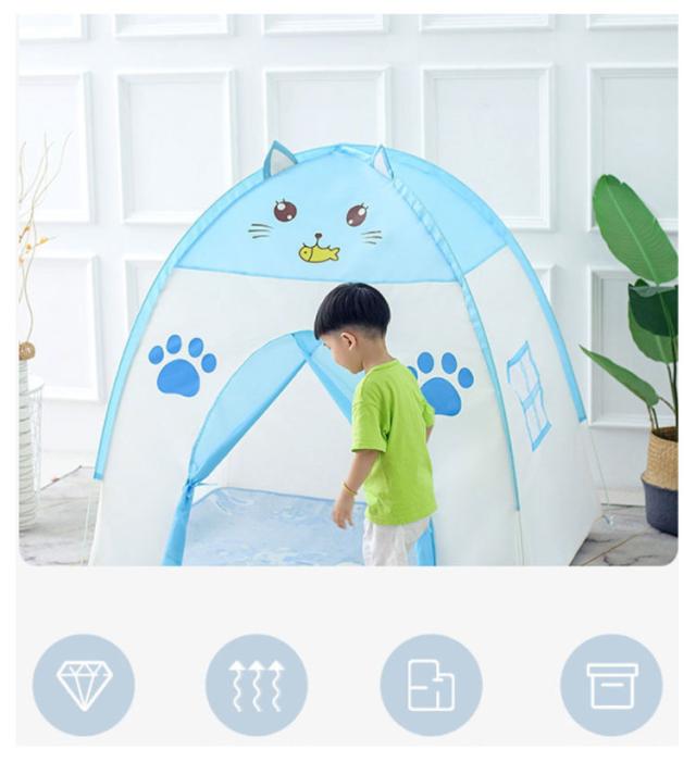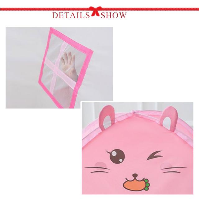 | 組み立て不要!可愛い猫耳付きの折りたたみ式キッズテントハウス。 ポリエステル生地を使用する。軽くて丈夫なので、長時間使うことができる。耐久性に優れていると同時に、防水性にも優れているので、思いがけない打ち水による片付ける手間を省ける。耐久性と防水性がよく、子供のそばに長くいられる。 テントの2側にメッシュ窓が付くので、通気性は優れます。また、効果的に蚊がテントに入るのを防ぎます。 大きい空間を占めない、子供が独立アイディア空間をつくれます。 収納ケース付きで持ち運びもラクラク♪ 室内外を問わず、おもちゃ、おままごと、テントハウス、秘密基地や知育玩具などとして遊びにピッタリです! | |
