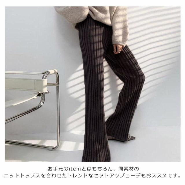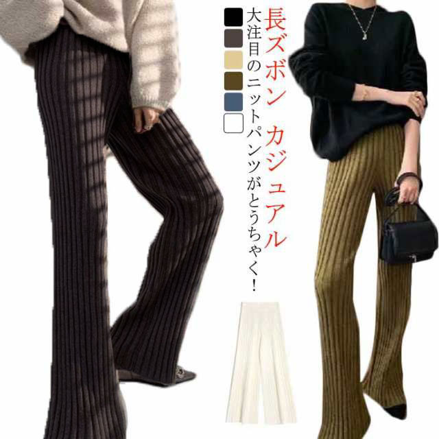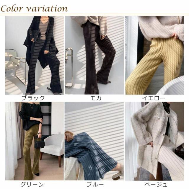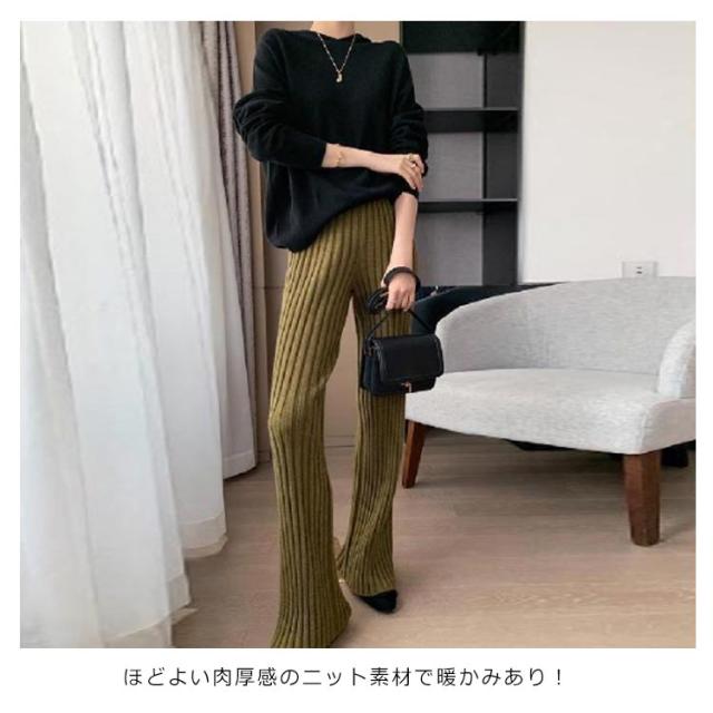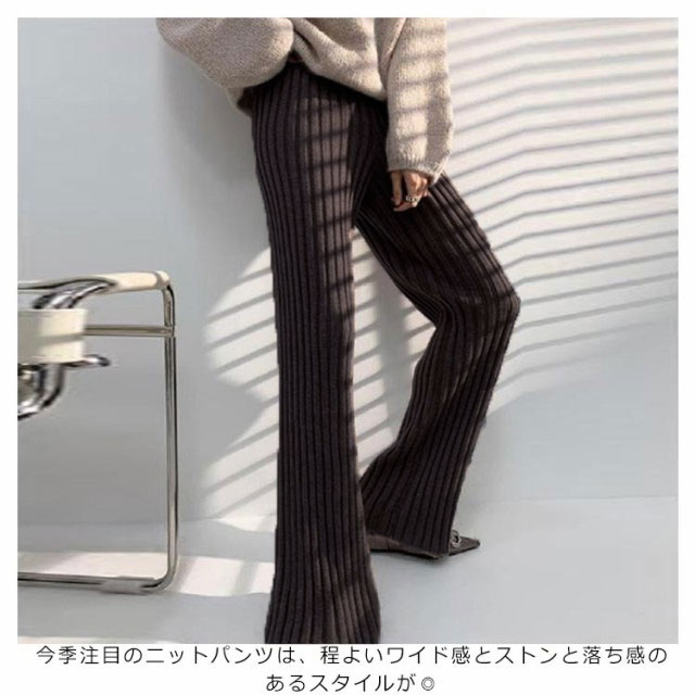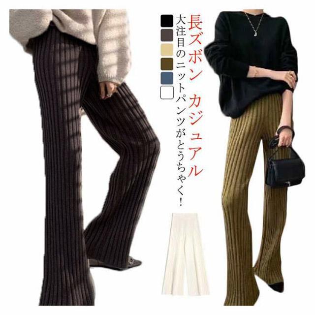 ニットパンツ リブニットワイドパンツ レディース 春 秋 冬 リブニット ワイドパンツ ガウチョ ロングパンツ ニット素材 長ズボン カジュアル イージーパンツ ストレート リブ ゆるパンツ フレアパンツ リラックス 楽ちん 送料無料
