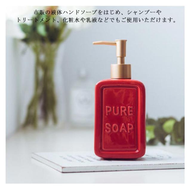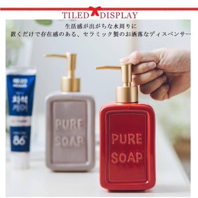 ハンドソープ ディスペンサー 陶器 ソープディスペンサー ボトル 容量475ml ソープ ソープボトル シャンプーボトル 詰め替えボトル ポンプ 北欧 雑貨 陶器 セラミック おしゃれ レット ホワイト グレー