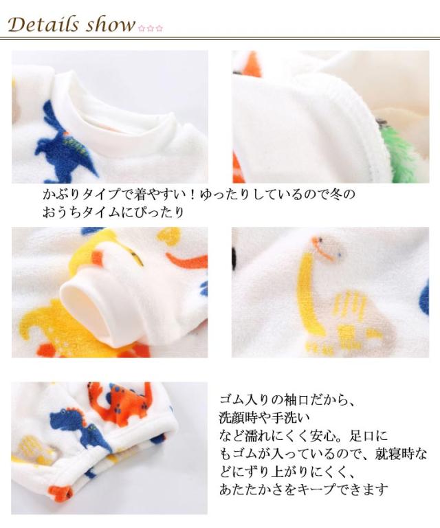 | かるくてふんわりあったかキッズルームウェア フランネルで、柔らかく優しい肌触りの生地だから、着心地 かぶりタイプで着やすい!ゆったりしているので冬のおうちタイムにぴったり ゴム入りの袖口だから、洗顔時や手洗いなど濡れにくく安心。 足口にもゴムが入っているので、就寝時などにずり上がりにくく、あたたかさをキープできます の可愛らしいデザインのパジャマはプレゼントにもオススメ! お孫さんに/お誕生日に/ちょっとした贈り物に | |