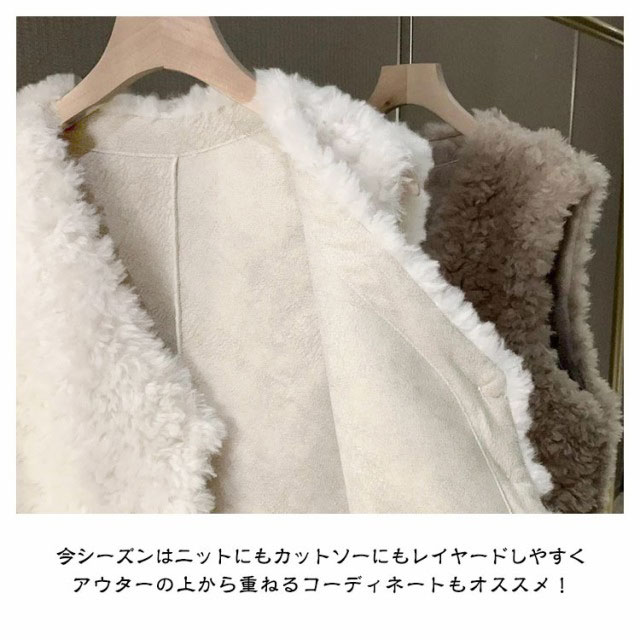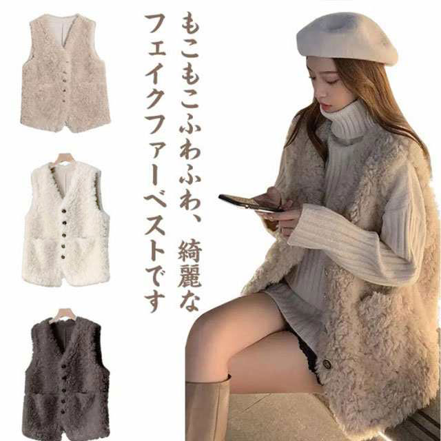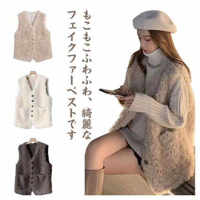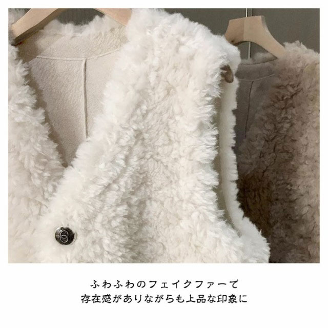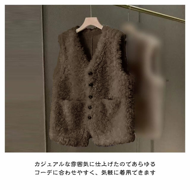 ファーベスト レディース ボアベスト フリースベスト 春 秋 冬 フェイクファー Vネック 暖か ボアジレ 前開き ノースリーブ トップス ゆったり 大きいサイズ コート アウター モコモコ ふわふわ 厚手 防寒 柔らか レイヤード 重ね着 エレガント カジュアル オシャレ 送料無料