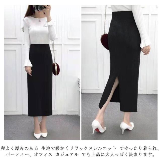ニット スカート バックスリット 冬 ニットスカート ロング丈 シンプル 無地 ミモレ丈 リブスカート タイトスカート リブニットスカート ロング ブラック コーラレット グレー ワインレット
