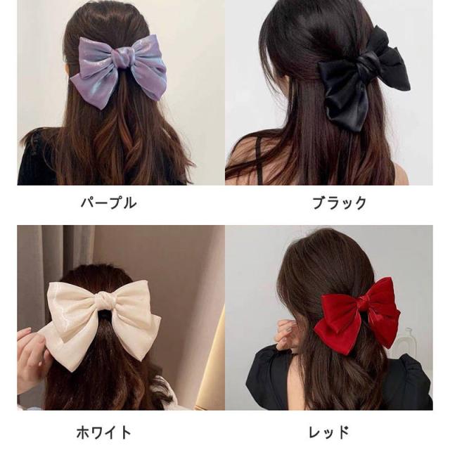 全4色 ベロア調 リボンバレッタ エレガント シンプル オフィス デイリー 大人 秋冬 ヘアクリップ ヘアアクセ ヘアアクセサリー レディース 大人っぽい かわいい プレゼント 大人カジュアル 送料無料