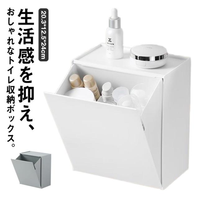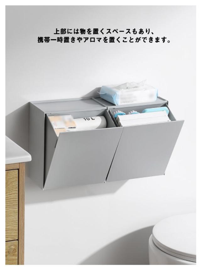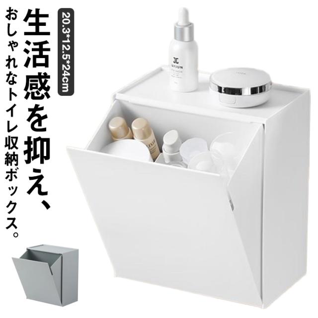 | 生活感を抑え、おしゃれなトイレ収納ボックス。 シンプルでスタイリッシュなデザイン、どんなインテリアにも馴染みやすい。 壁に設置したり、そのまま床に置いたりお好みに合わせてお使いいただけます。 片手でサッと開いたり閉じたりができるので、片手が塞がっていてもスムーズに動作できます。 上部には物を置くスペースもあり、携帯一時置きやアロマを置くことができます。 ゴミ袋を隠して使えるから、ゴミ箱としても大活躍。 | |