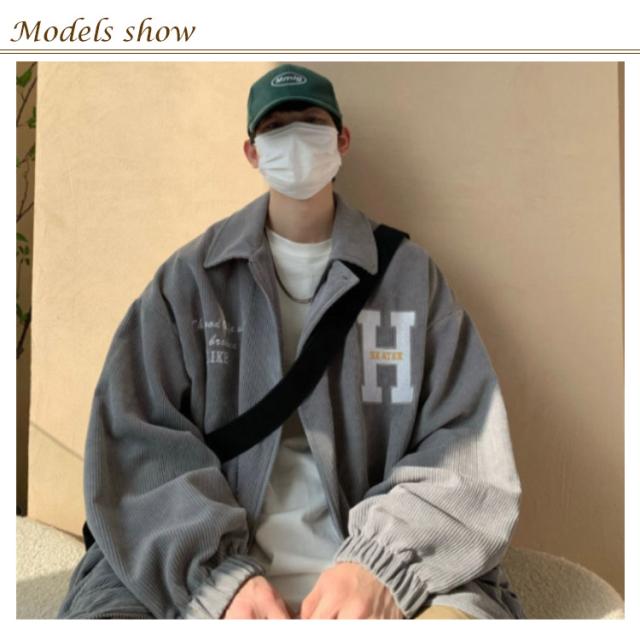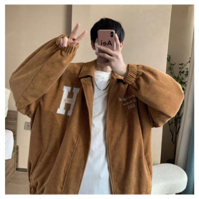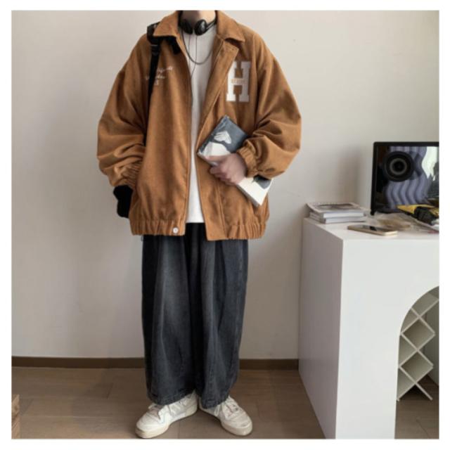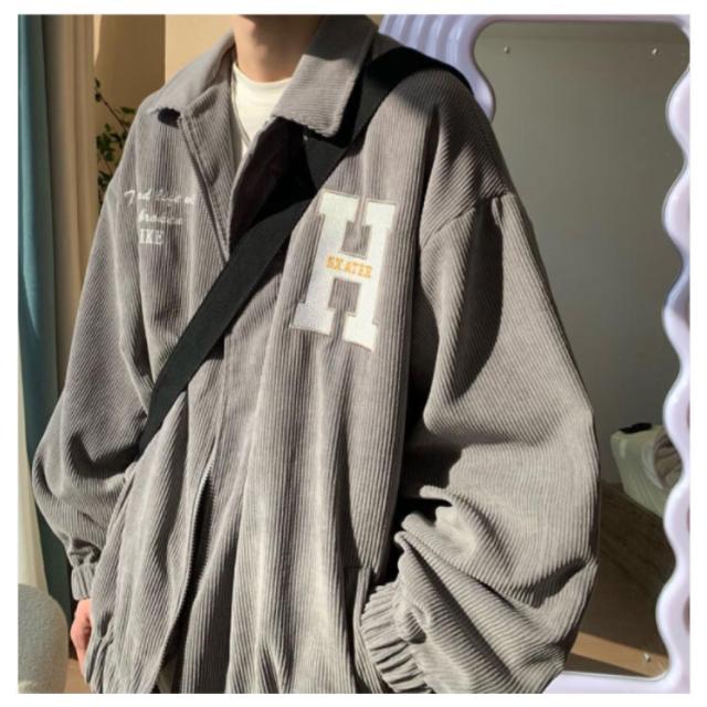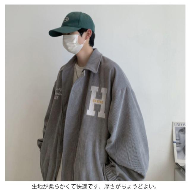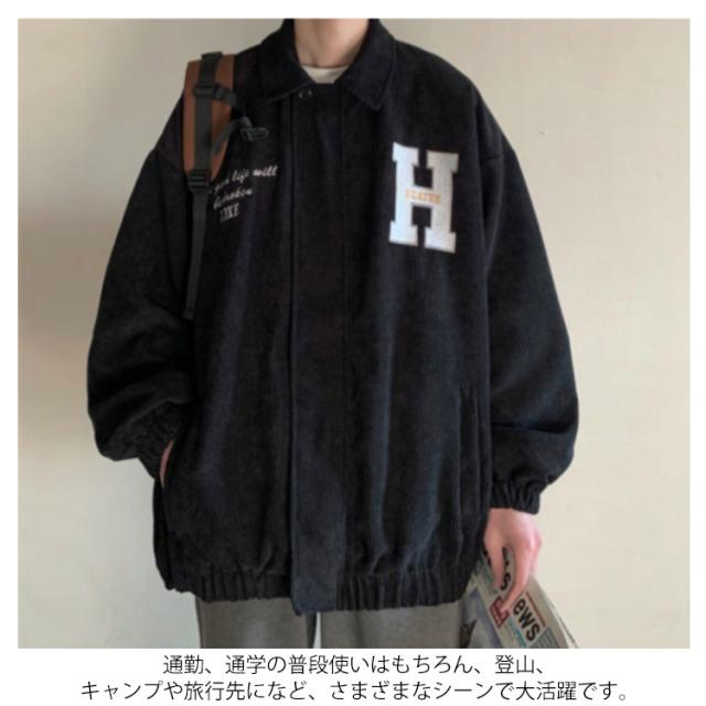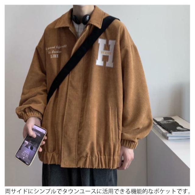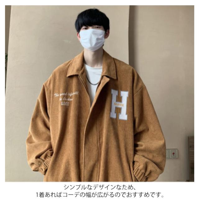 ジャケット コーデュロイ メンズ 長袖 折り襟 ジャケット スタジャン アウター 春 秋 冬 コート ゆったり トップス オーバーサイズ カジュアル 男女兼用 ファッション 通学 通勤 春服 秋服 10代 20代 30代 シンプル スポーティ風 大きいサイズ