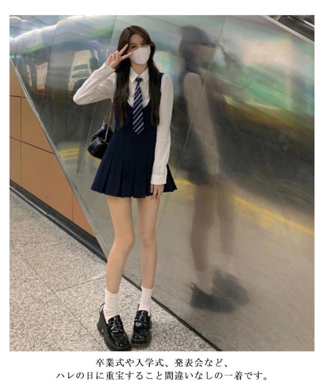 学生服 制服 シャツ ジャンパースカート ネクタイ 3点セット 女子高生 長袖 スクールシャツ ショート丈 ミニ丈 プリーツスカート ワンピース スクールスカート JK 制服 無地 コスプレ スクール 女子 中学生 高校生 制服 フォーマル 卒業式 入学式 発表会 通学 送料無料