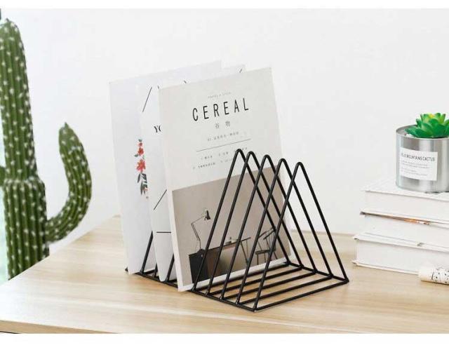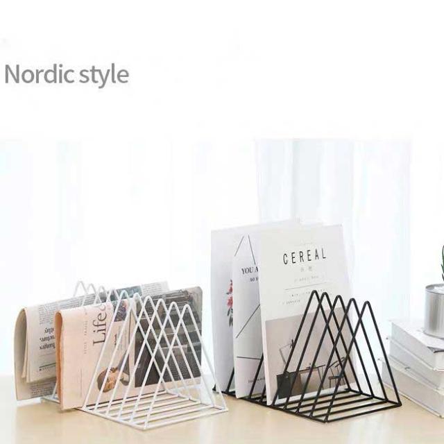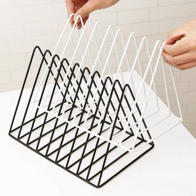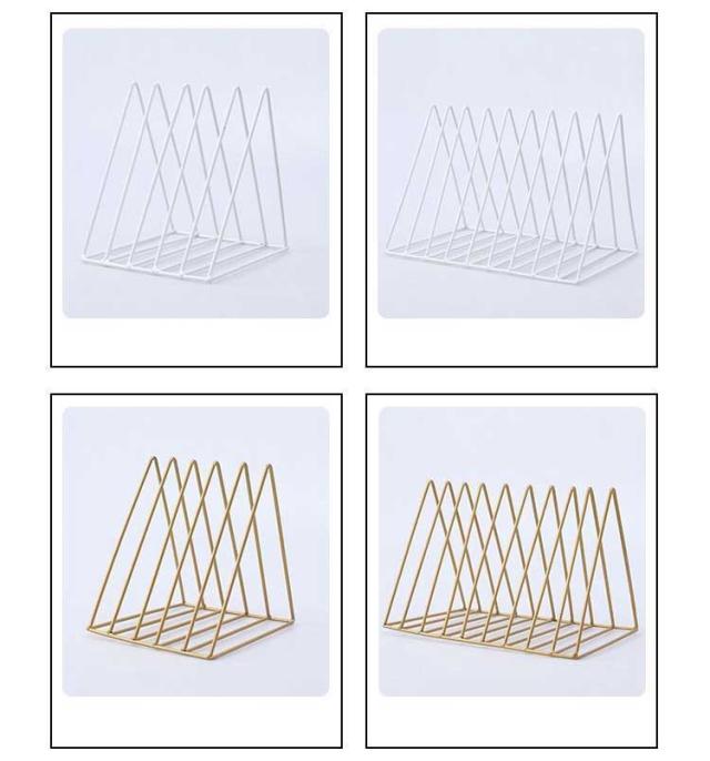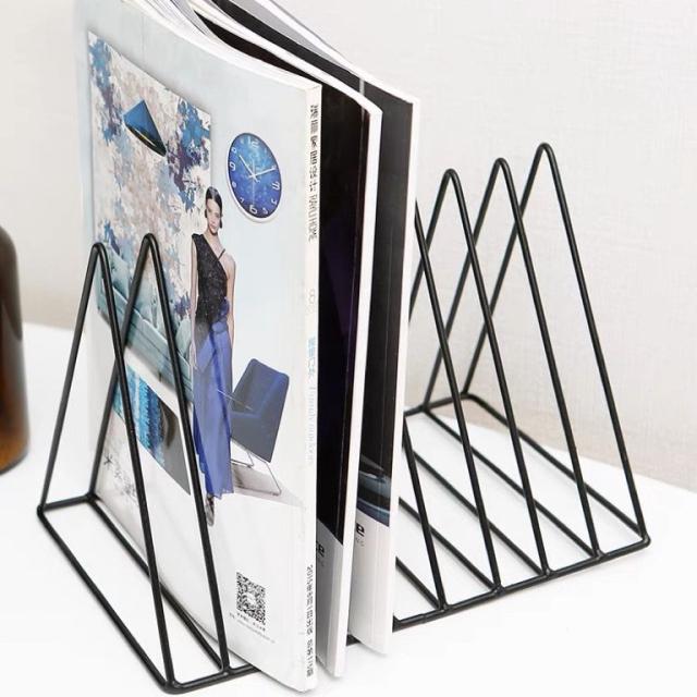 ブックスタンド 本立て 三角 北欧風 金属製 卓上 机上収納 丈夫 ファイル収納 ドキュメントホルダー シンプル 等間隔な仕切り ファイルホルダー キッチン まな板立て 皿立て 倒れない